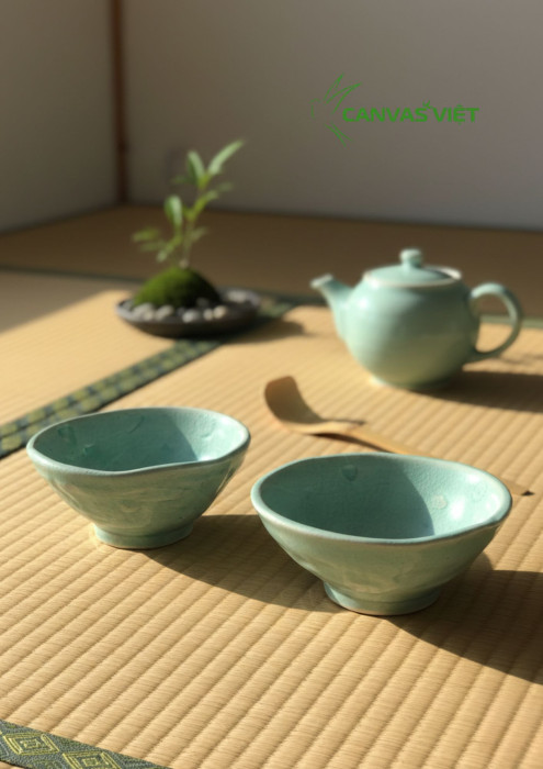 Lớp men xanh ngọc chảy tự do trong quá trình nung tạo nên vân men độc bản, mỗi chiếc chén là một phiên bản duy nhất, không trùng lặp. Bề mặt men có độ rạn nhẹ, cảm giác mộc, ấm tay, càng dùng lâu càng có chiều sâu.