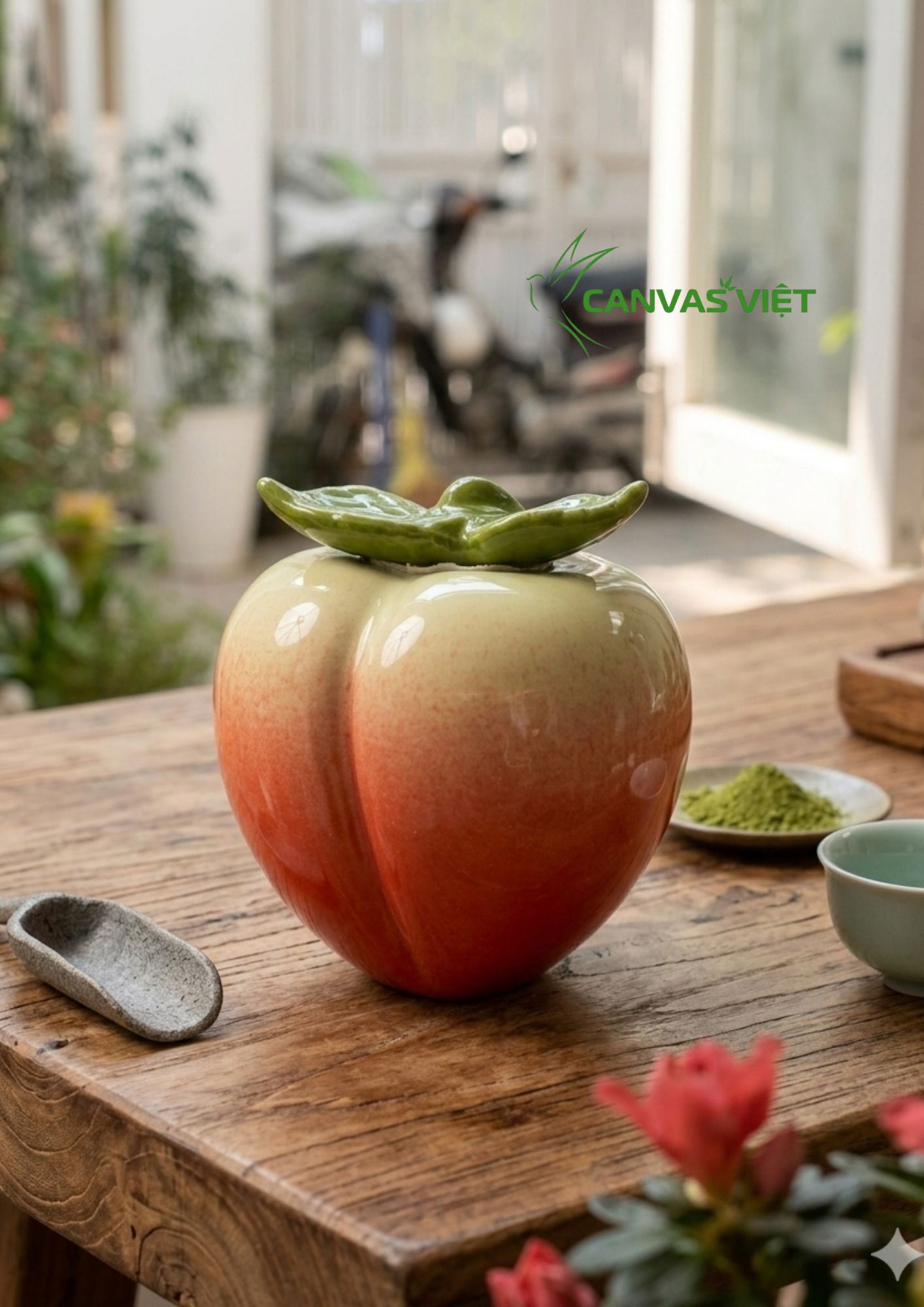 Hũ đựng trà dáng quả đào tròn đầy mang vẻ đẹp vừa tinh tế vừa độc đáo, là món phụ kiện nhỏ nhưng đủ để làm nổi bật không gian bàn trà.
